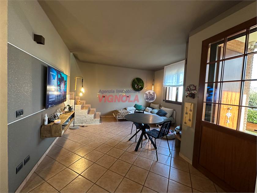 In splendida zona collinare tranquilla e panoramica proponiamo Villetta a schiera di testa con ampio giardino, costruita nel 2001 e recentemente ristrutturata, ideale per chi cerca comfort, indipendenza e spazi generosi, composto da un ampio soggiorno con cucina, disimpegno, due camere da letto matrimoniali e un bagno con vasca, scala di collegamento al p.1 mansardato due -tre stanze con un'ulteriore bagno con doccia il tutto comprensivo di un splendida tavernetta con camino un bagno lavanderia e un ampio garage doppio con portone automatizzato
