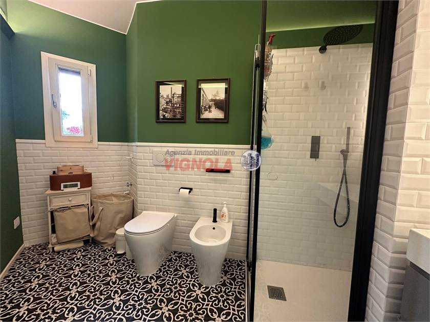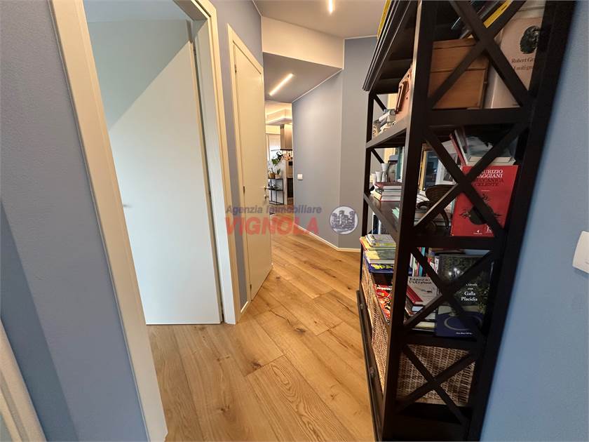La ristrutturazione ha interessato ogni dettaglio: pavimenti in rovere in tutti gli ambienti, porte rimadesio nella zona giorno, infissi con doppi vetri (alluminio esterno e legno interno), aria condizionata con pompa di calore e tapparelle motorizzate, per il massimo comfort abitativo.