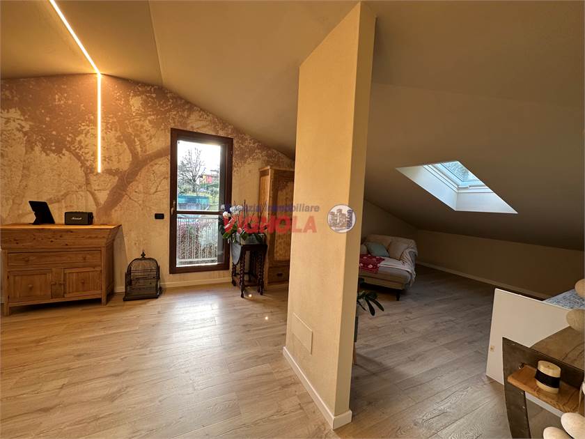 In splendida zona collinare tranquilla e panoramica proponiamo Villetta a schiera di testa con ampio giardino, costruita nel 2001 e recentemente ristrutturata, ideale per chi cerca comfort, indipendenza e spazi generosi, composto da un ampio soggiorno con cucina, disimpegno, due camere da letto matrimoniali e un bagno con vasca, scala di collegamento al p.1 mansardato due -tre stanze con un'ulteriore bagno con doccia il tutto comprensivo di un splendida tavernetta con camino un bagno lavanderia e un ampio garage doppio con portone automatizzato