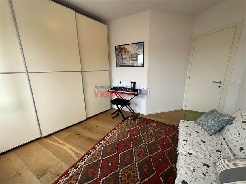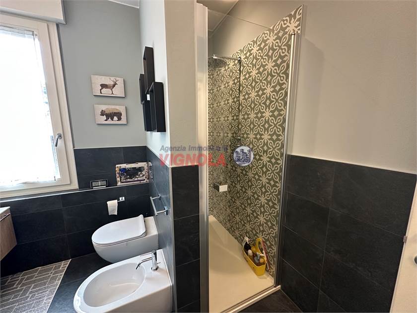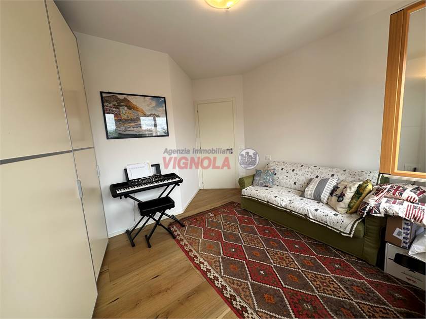 La zona notte, ben separata, comprende tre camere da letto, di cui una con accesso a un secondo balcone, altro ripostiglio e due bagni rifiniti con gres di qualità.