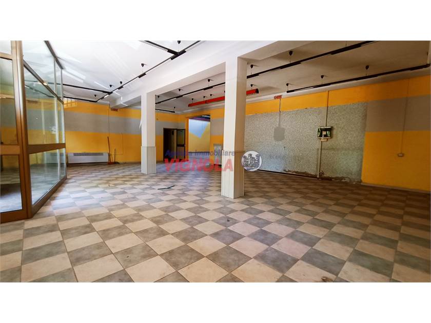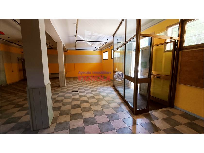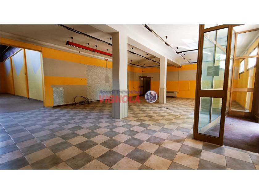 In ottima posizione di passaggio a brevissima distanza dal centro di Vignola, proponiamo in vendita locale disposto interamente al piano terra, composto da ingresso su ampia area open space di circa 100 mq. con annesso ambiente, cucina con centrale termica, tre bagni, ripostiglio ed ambiente di circa 215 mq. (ex sala da ballo) utilizzabile per svariate attività.
